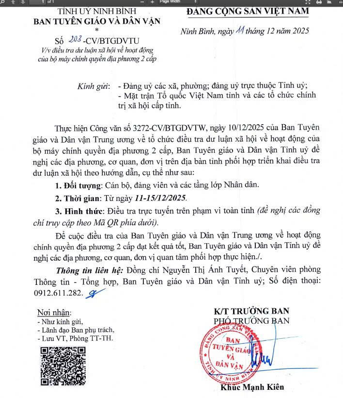 Công văn số 202-CVBTGDVTU điều tra dư luận xã hội về hoạt động của bộ máy chính quyền địa phương 2 cấp